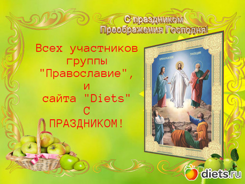На Руси этот праздник получил народное название «Яблочный Спас». Дело в том, что в Израиле и Греции день Преображения приходился на пору созревания винограда. Христиане приносили душистые гроздья в храм — для благословения и в знак благодарности Богу. В странах, где виноград не растет, например, в большей части России, вместо него стали освящать яблоки. Существует специальная молитва «На освящение начаток овощей (плодов)».