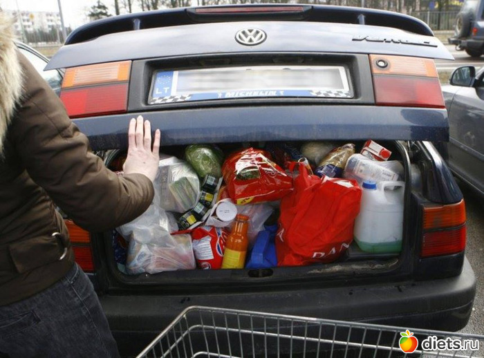 Товарами уже заполнен не только багажник машины, но и весь салон до потолка.