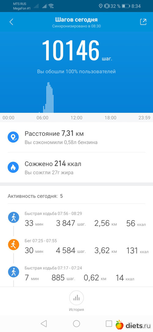 А на телефоне подключается GPS и отслеживает мой маршрут. Браслет у меня не дорогой и функций на нем мало.