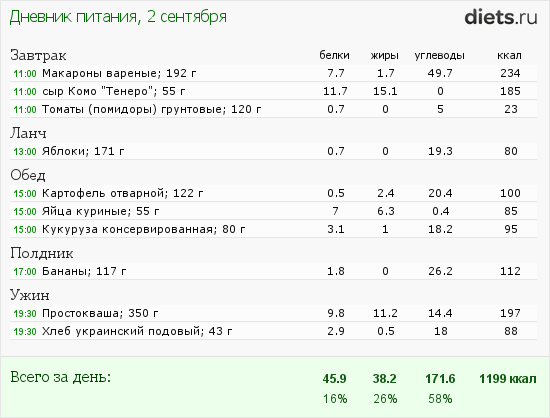 Мое вчерашнее меню: