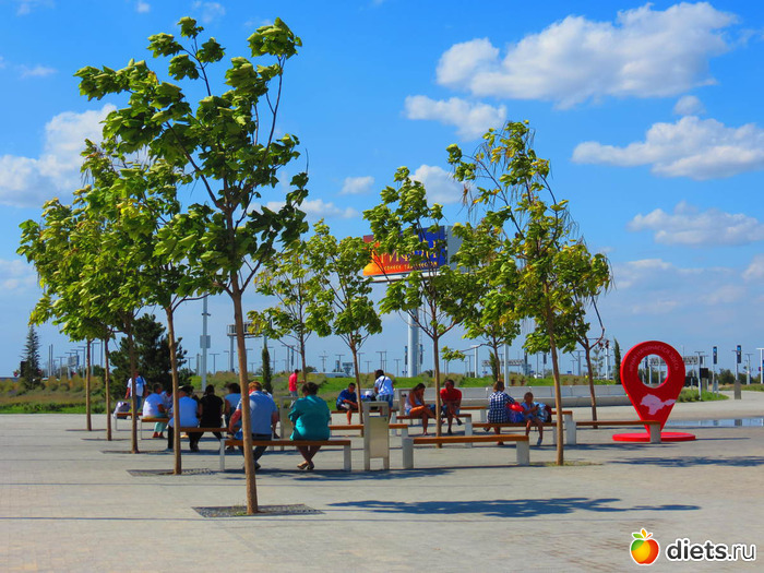 Совсем мало сидений, зато их дофига в близлежащих кафе, но там написано: "только для посетителей кафе" вот такой противный маркетинговый ход.