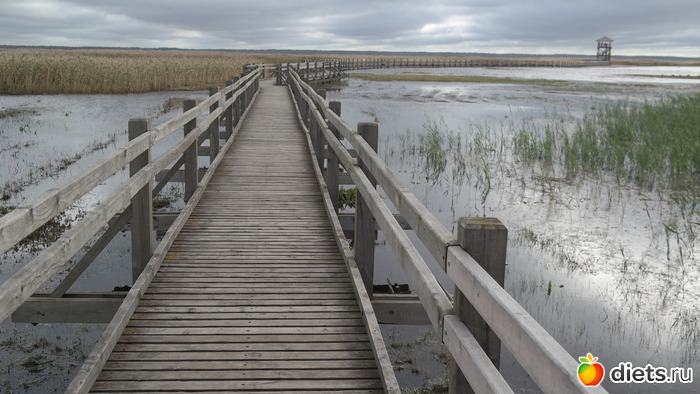 Начали культурную программу с тропы по болоту. Тропа очень коротенькая, заканчивается смотровой башней. Виды красивые