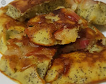 Режу его на кусочки лопаткой прямо на сковороде и горяченьким подаю к столу.