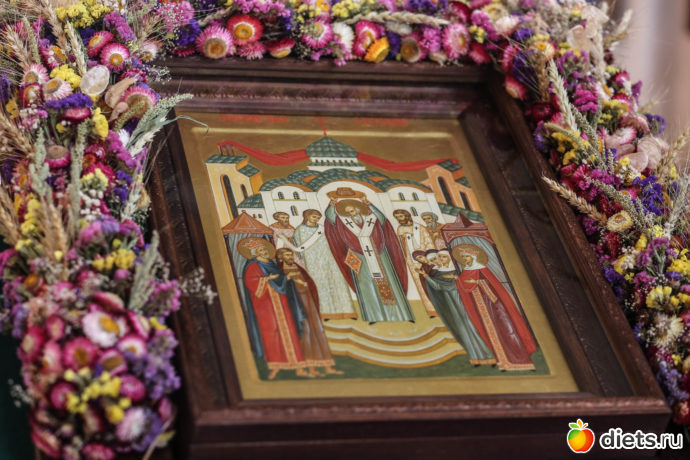 Как только Крест Христов коснулся умершего, он тотчас ожил. В величайшей радости благоверная царица Елена и Патриарх Макарий высоко подняли Животворящий Крест и показали Его всему стоявшему народу.
