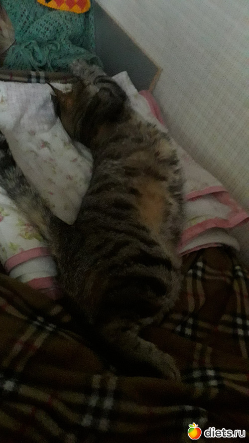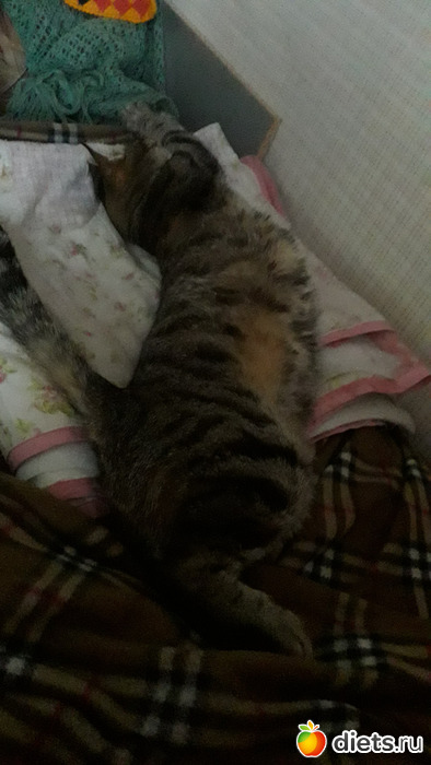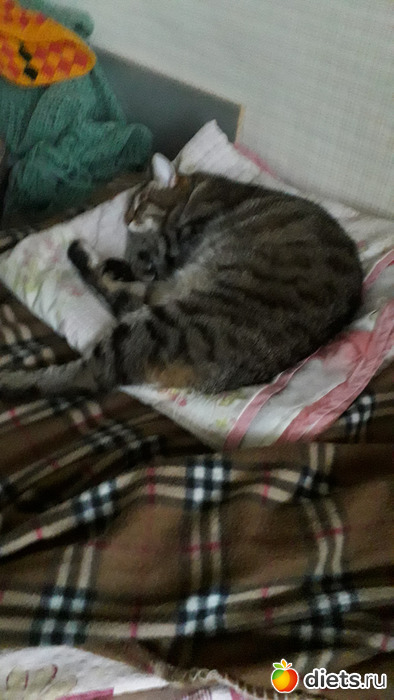 Спасибо,Юлечка! Я тоже боюсь разбудить. Вечно ляжет в ногах-так и сплю с подогнутыми ногами!А дома одна-Гриша приезжает-уезжает все лето-кот со мной спит.Старенький ведь-15-ый год.Порой просыпаюсь от его храпа!Сама может тоже храплю -сама себя ведь не слышишь!Но- порой так расхрапится,как будто рядом мужчина со мной спит и храпит!