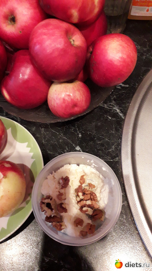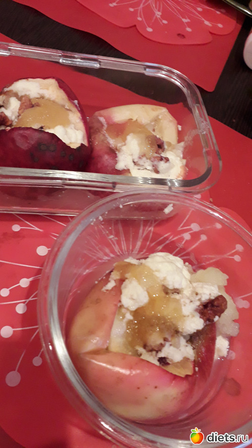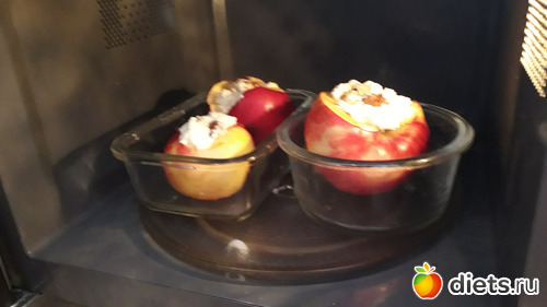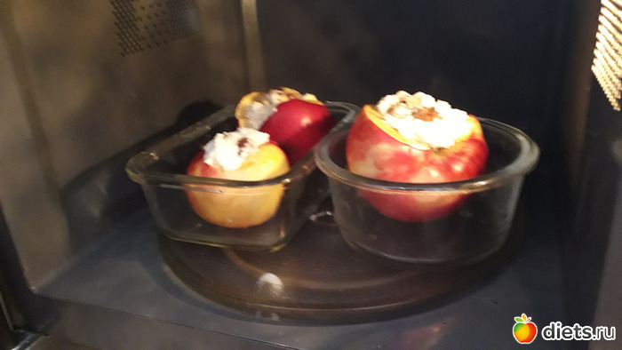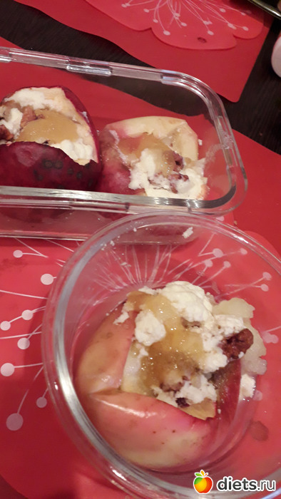 -ЯБЛОКИ ЗАПЕЧЕННЫЕ В МИКРОВОЛНОВКЕ С ТВОРОГОМ И ГРЕЦКИМИ ОРЕХАМИ, ПОЛИТЫЕ МЕДОМ