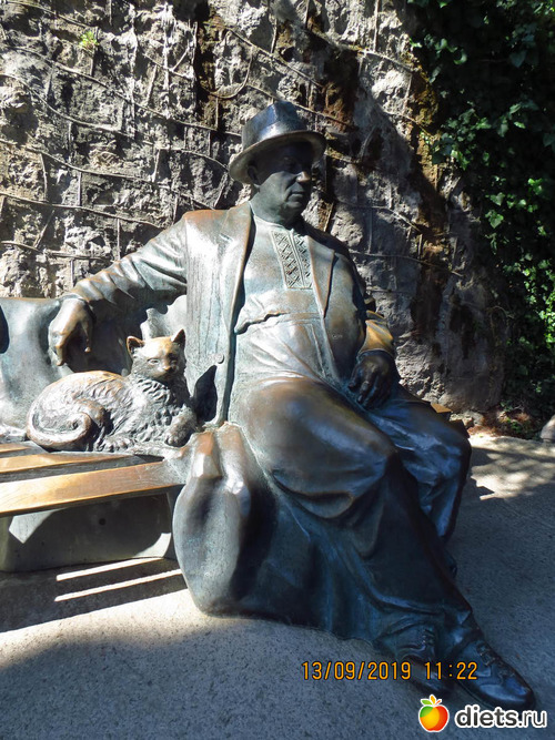 15 августа 2013. Этим летом в лечебно-оздоровительном комплексе «Айвазовское» (пос. Партенит) появился бронзовый памятник под названием «Отдыхающий крымчанин». На лавочке сидит мужчина в рубашке-вышиванке, плаще и шляпе. Он очень похож на Никиту Сергеевича Хрущева – советского государственного и партийного деятеля с 1953 по 1964 гг. Рядом с ним на лавочке — бронзовый кот достойного вида.