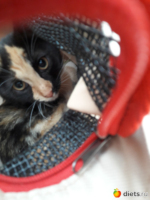 Привет твоей кошачьей семье от нашей, уже повзрослевшей Бориски, ей уже примерно месяцев 8, а нашла я её такую же как твоя Моня!!!