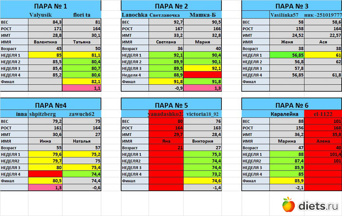 ПОБЕДИТЕЛЬНИЦАМИ ДУЭЛИ №54 по количеству потерянных кг становятся: