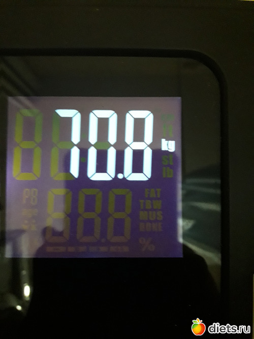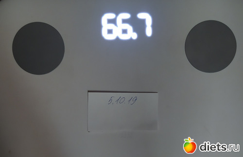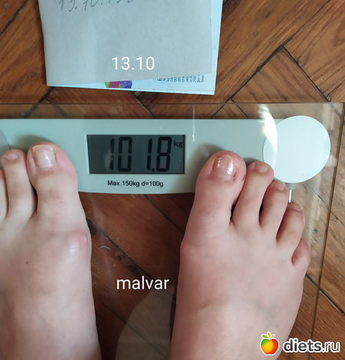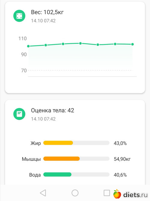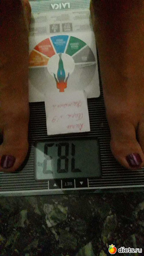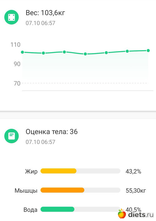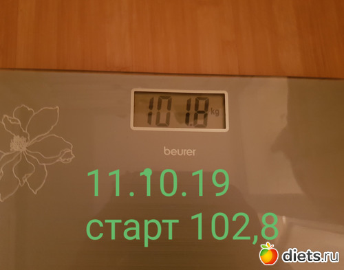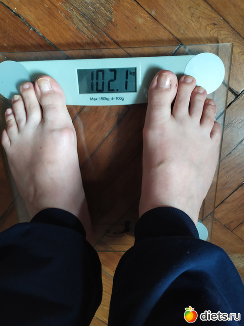 Я, извиняюсь, не сделала фото сегодня. Но взвесилась утром, данные из приложения на телефоне. Вес 103,6