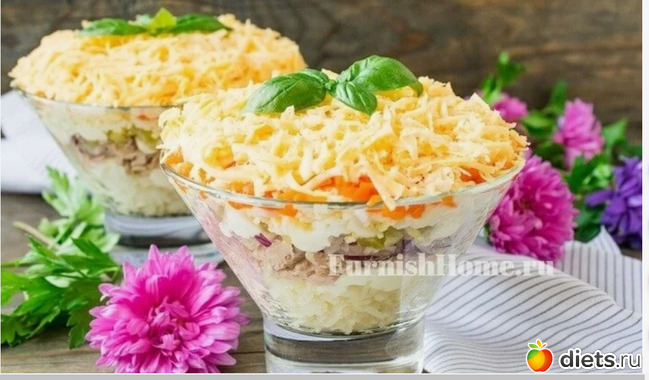 Последним слоем выложим твердый сыр, измельченный на терке с крупным полотном. Смазывать слой сыра майонезом не нужно.