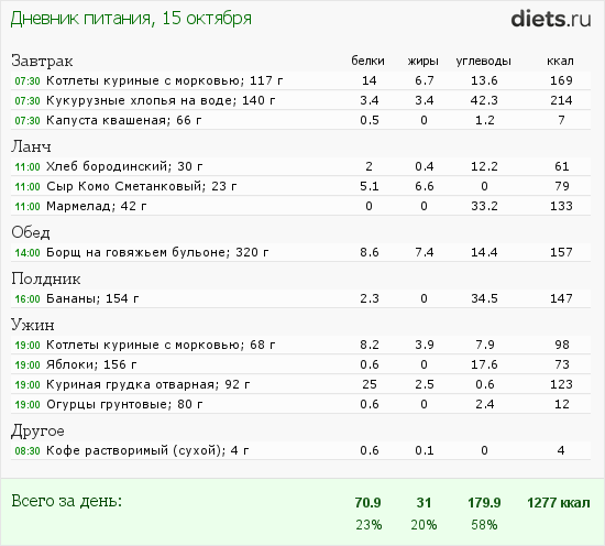 Калорийность продуктов