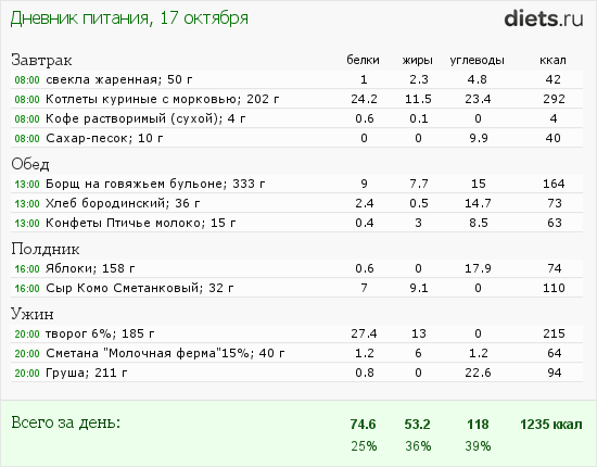 Калорийность продуктов