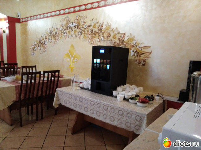 За 2 дня привыкли и вошли в ритм. Процедуры, уложилось в голове, что когда и во сколько. Всё основные лечение заканчиваются в 14.00., а после те, что по желанию - бассейн, сауна, фитнесс. Питание нравится, порции не очень большие, но подают по 3-4 блюда. Вот пример одного завтрака, каша овсяная с запеченной куриной ножкой, суфле творожное с молочно - сливочным соусом, свекольная запеканка с фруктами и сгущенным молоком и на шведском столе можно было взять свежие шинкованные овощи морковь, свёкла, перец, кабачки + там же стоит масло подсолнечное и лежит чесночок. А ещё обязательно, каждый день масло сливочное и сыр, на завтрак. Но наша, особенная любовь - кофе из кофе машины, на выбор, наливаем сами, ну и чай конечно, тоже сами.