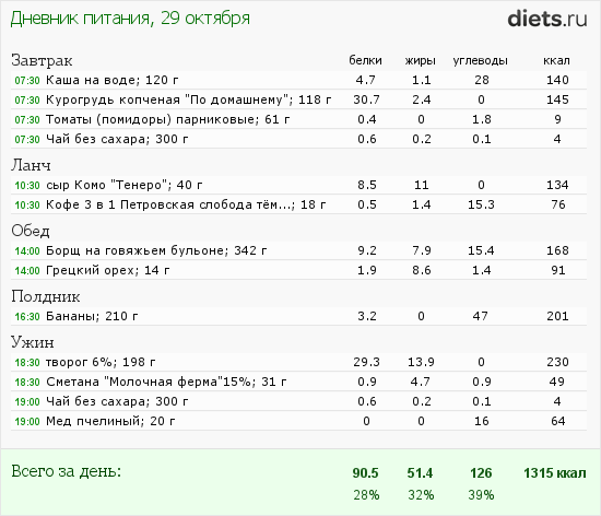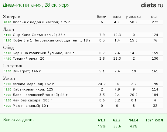 Калорийность продуктов