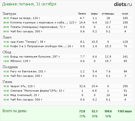 Калорийность продуктов