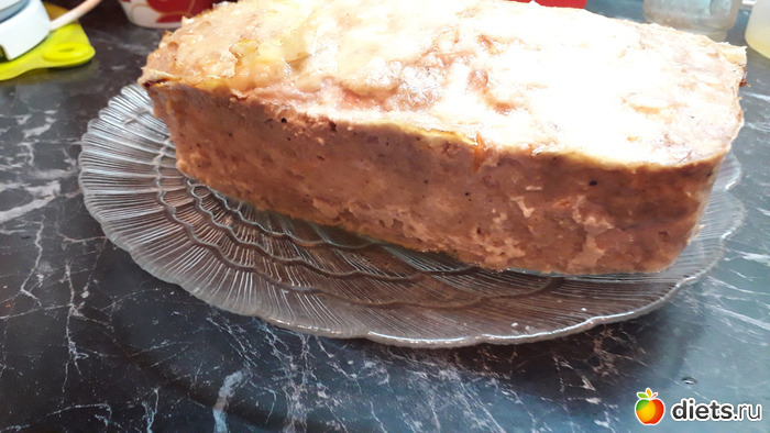 А вот яблочный пирог в мульте у аеня не получился по нескольким причтнам: яблоки были очень сочные, да еще я залила молоком; пирог получился высокий, потому и не пропекся.