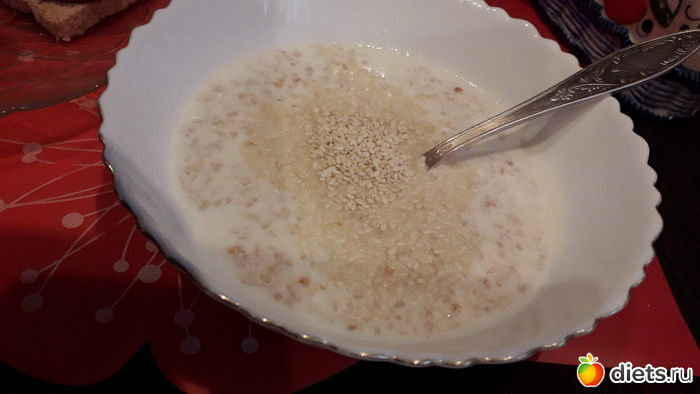 -УТРЕННЯЯ ОВСЯНКА НА ПОЛУМОЛОКЕ, С КУНЖУТОМ