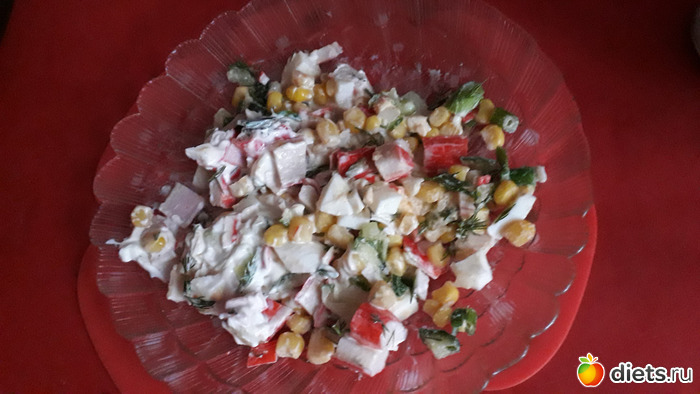 -САЛАТ С КРАБОВЫМИ ПАЛОЧКАМИ И КУКУРУЗОЙ