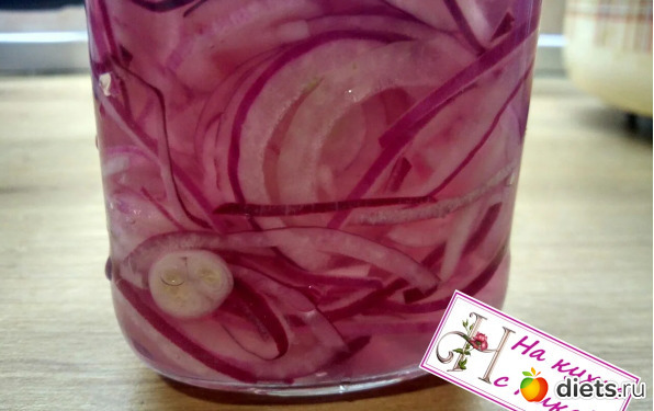 Хоть и кажется, что уксуса много, но лук получается не сильно острым. На мой взгляд и моих домочадцев.
