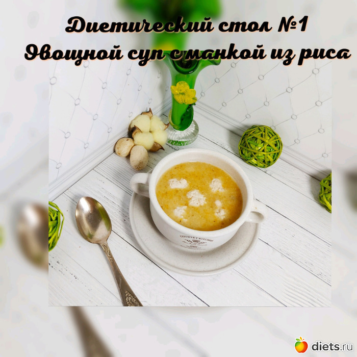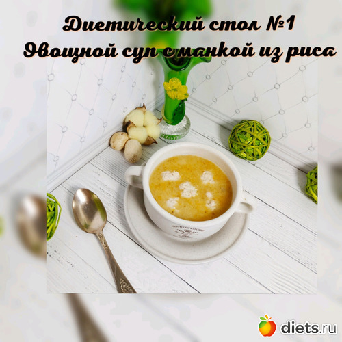 Овощной суп с рисовой манкой с фрикадельками приготовленными на пару 250 г