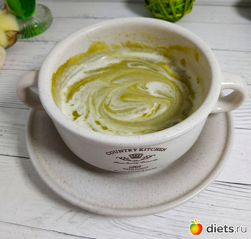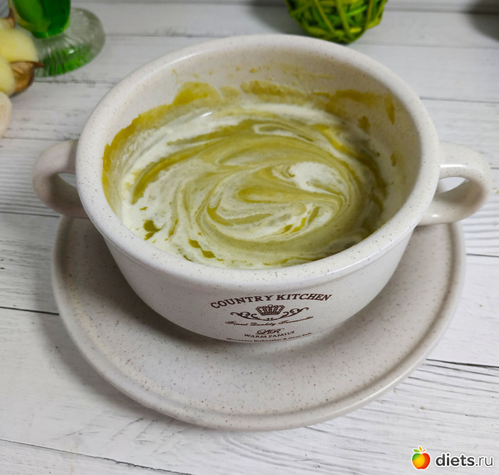 В готовый крем суп перед едой можно добавить столовую ложку сливок 10 % тогда суп приобретает сливочный вкус.