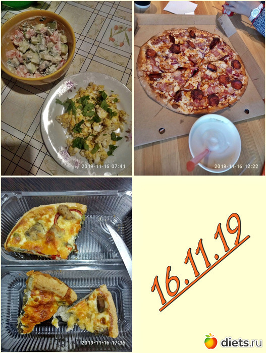 Утром были яйца-скрамбл и салат из огурцов и помидоров со сметаной. Но в обед уже была четвертинка пиццы Дон Бекон из Додо Пиццы. Она очень вкусная. Тонкое тесто и много мяса с сыром))) и стакан хорошего латте без сахара и без сиропа.