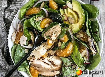 Салат, который вы смело можете приготовить из остатков отварной куриной грудки, заправив его легким весенним соусом. Любой ингредиент вы смело можете заменить на свой вкус. Мандарины можете заменить ломтиками манго или апельсина, вместо шпината вполне подойдет любой салатный микс или рубленая молодая капуста.