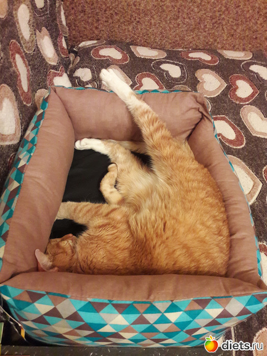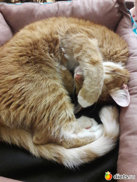 А вечером закончила вязать игруху, которую спонтанно начала вязать в субботу, а рядом спал любимый рыжий усатик