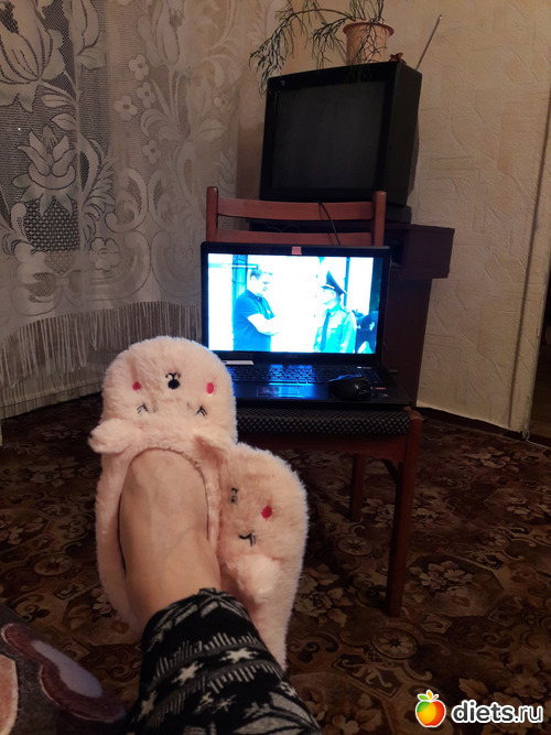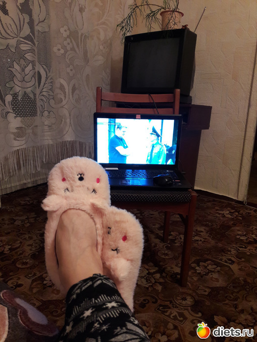 Вечерком сытая и довольная вязала под любимый сериал в новых тапочках