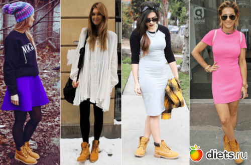 Кстати, прикол. а какая обувь? у меня есть высокие сапоги - без каблука. Есть ботиночки на каблуке. Есть ботильоны. Но! я недавно купила черные тимберленд. Померила с ними ради прикола - и в этом что-то есть. В 40 лет никак не могу расстаться со своим бунтарским духом