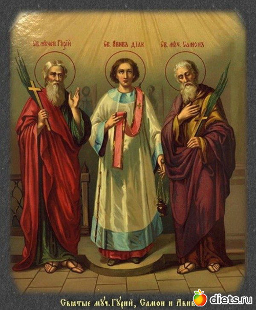 Святые мученики Гурий, Самон и Авив, являясь покровителями семьи и брака, вот уже на протяжении многих веков приходят на помощь женщинам, терпящим скорби и неправды от своих мужей. История мученичества этих трех заступников семьи уходит корнями в III век, когда они претерпели гонения от императоров Диоклетиана и Лициния. Не отказавшись от веры во Христа, святые были подвергнуты жесточайшим пыткам, а затем казнены.