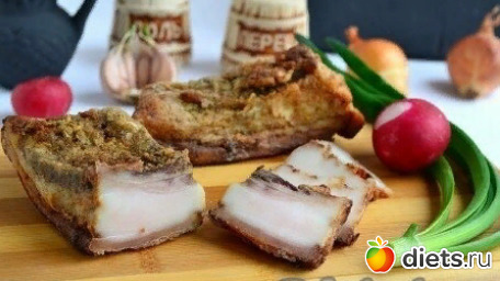 Хочу предложить вам интересный рецепт сала, запеченного в фольге. Сало получается необычайно вкусным, безумно ароматным, мягким, с хрустящей, но жующейся шкуркой. Структура сала в процессе запекания изменяется кардинально, по вкусу оно совершенно не похоже на соленое или свежее. Попробуйте, сало можно употреблять в теплом виде, но вкуснее всего - в охлажденном.