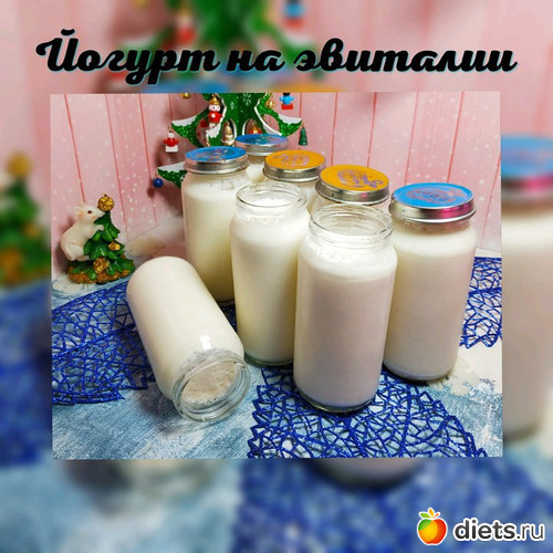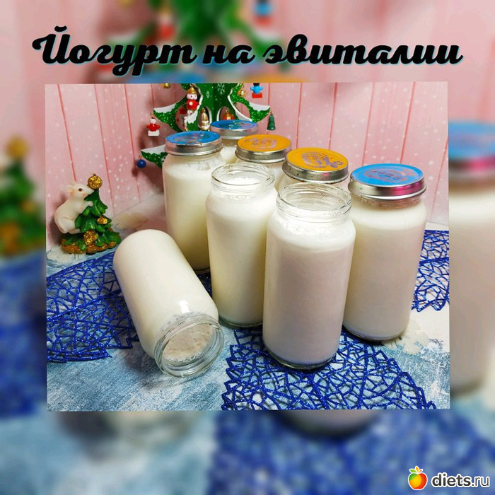 Внести в молоко сухой закваски, предварительно растворив её тёплым молоком и тщательно взболтав. Затем молоко с уже введённой закваской хорошо взбиваем венчиком. Разливаем по баночкам и ставим для сквашивания на 12 часов.