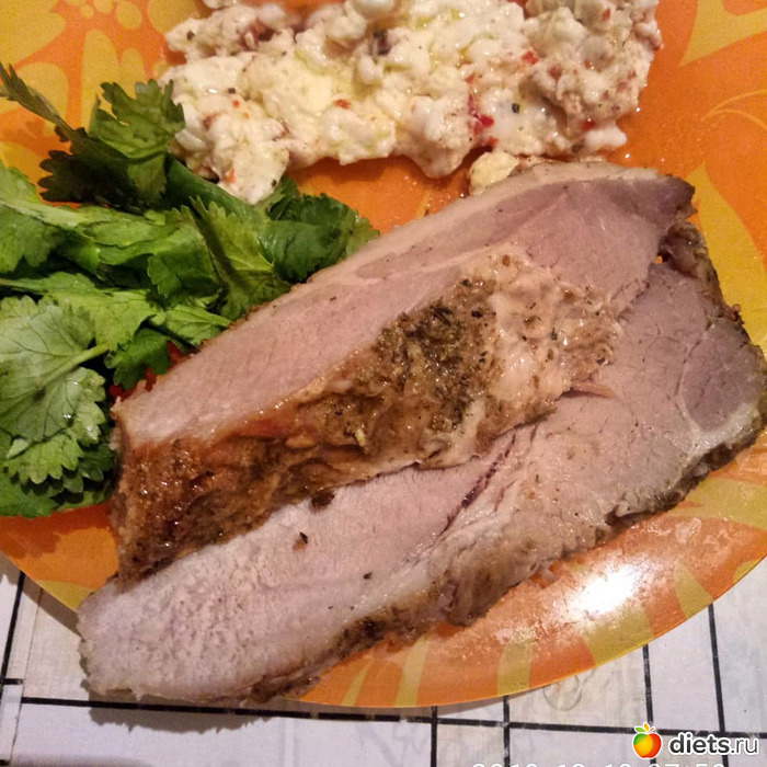 В воскресенье разморозила мясо, промыла, подсушила, натерла щедро приправой и оставила на сутки в холодильнике.