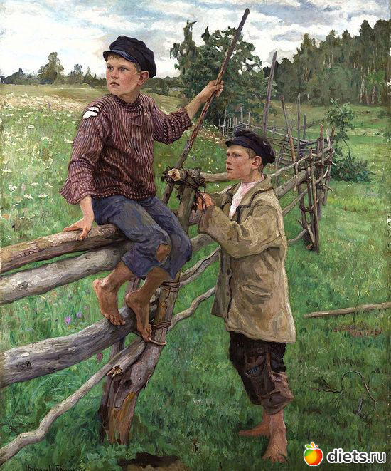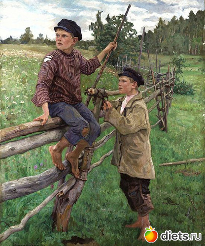 Леша перепрыгнул через забор и исчез. Сережа собрал свои ведра и поплелся во двор обедать. Он чувствовал себя плохо, у него кружилась голова и подкашивались ноги.