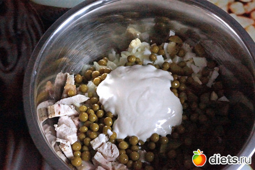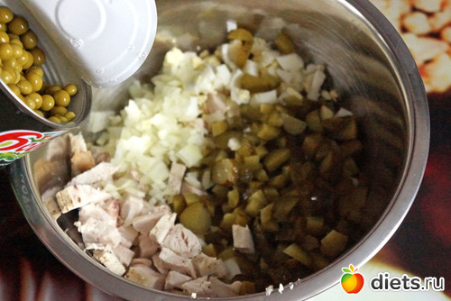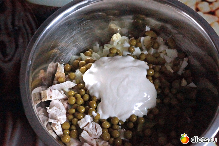 Когда то давно я проходила практику в столовой при Педагогическом институте и в меню был салат под названием "Столичный", я очень его тогда полюбила и готовила на все праздники дома, вместо популярного Оливье. К сожалению со временем точный рецепт из памяти стерся, но основные ингредиенты я помню точно. Предлагаю вашему вниманию мой вариант этого замечательного салата. А бонусом к нему рецепт постного майонеза, который мы будем готовить из рассола от горошка. По этой причине очень рекомендую зеленый горошек "6 соток", и сам горошек в салат идеальный, нежный и рассол от горошка вкусный и майонезом на нем тоже получается нежным.