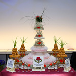 Высота торта 117 см. и по словам Мастера Алдиса Бричевса только на украшение торта ушло более 560 шоколадных кружев «Бельгийских Королей» которые выполнены были в ручную.