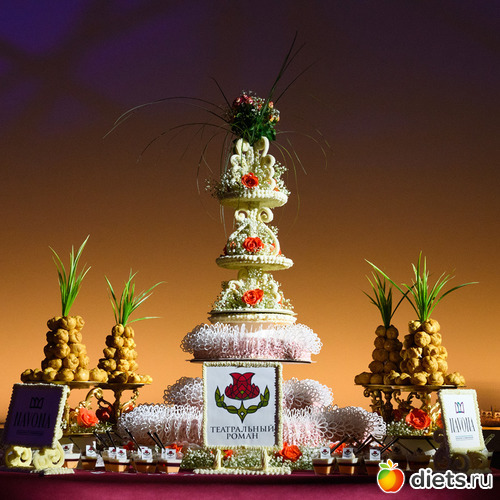 Кульминацией вечера стол Праздничный торт посвященный вручении VI-й премии «Театральный роман»-2019».