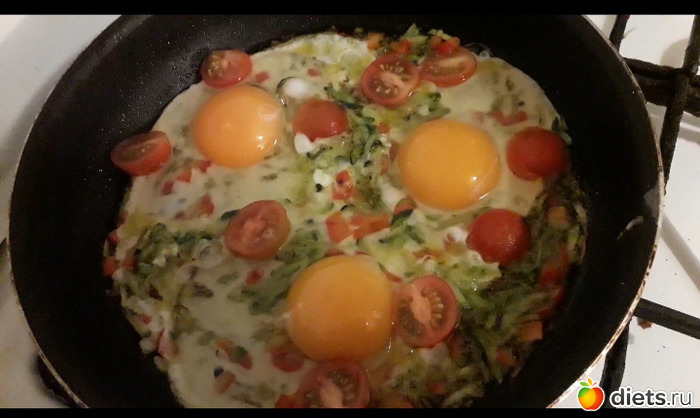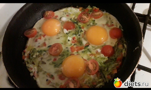 Цукинни, перец, черри и яйца, куда же без яиц то