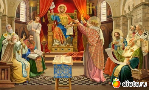Чтобы раз и навсегда разрешить все споры, император Константин в 325 году решил созвать со всех концов великой империи епископов на I Вселенский Собор в Никею. Впервые в одном месте собрались служители Божьи из православных Церквей Европы, Африки и Азии. В Никею приехали даже персидский и скифский епископы. Среди 318 архипастырей, а также сопровождавших их пресвитеров, дьяконов и ученых мужей на Соборе можно было увидеть знаменитых богословов Александра Александрийского, Евстафия Антиохийского, дьякона Афанасия, ставшего в последствии предстоятелем Александрийской Церкви. Прибыли в Никею и великие чудотворцы Николай Мирликийский и святитель Спиридон Тримифунтский.