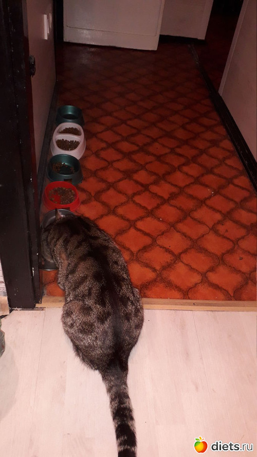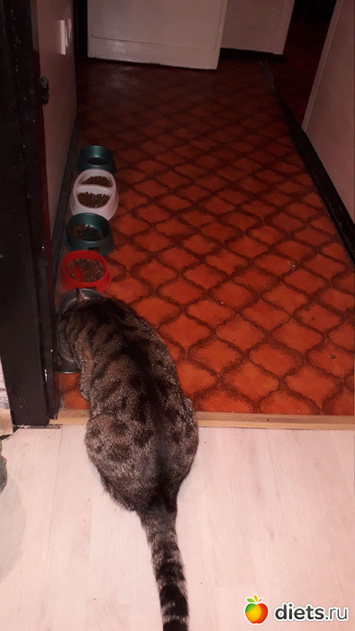 Столовая кота! Всегда 5-7 видов корма+влажный из пакетика+кусочек свежей вырезки ежедневно! Так всю его кошачью жизнь!