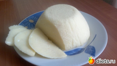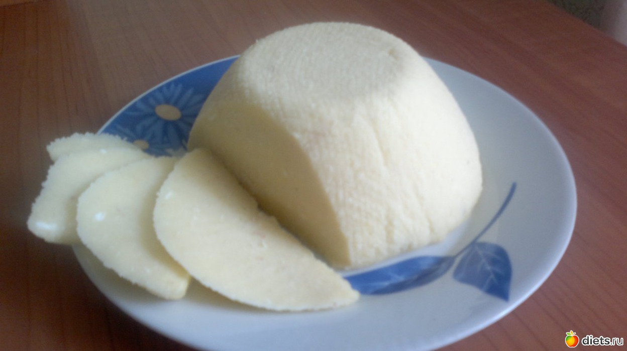 взять творог и варить его в молоке (разомну все комочки, до однородной массы), потом добавляю воды. варить 10-15мин, постоянно помешивая. параллельно растопить масло +кубик +сода. отставляю в сторону +яйца, размешать. творог откинуть в сито, дать стечь и на огонь в подготовленную смесь из яиц и масла. здесь можно добавить зелень, специи... все что пожелаете. сначала масса увеличивается в размере, потом опадает. готовите 10 мин, постоянно помешивая. здесь она становится похожей на сыр. потом в глубокую миску марлю (чтоб легче было вытащить потом) и получившуюся смесь. остынет и в холодильник.