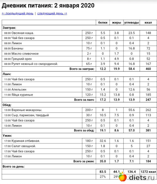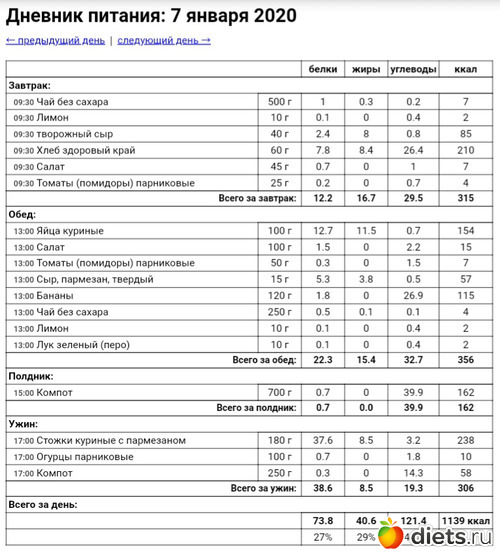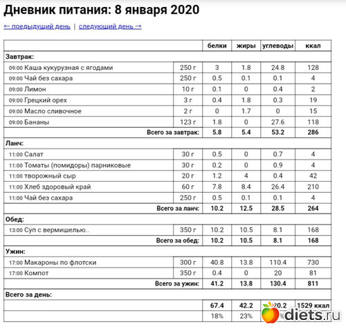 Мой вес на сегодня. Меню и калорож тот же. (Выкладывать не стала)