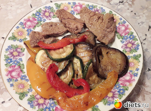 съедено: форель на гриле с овощами на гриле + шампанское и говядина тушеная с теми же овощами на гриле (что то много я их на грилила