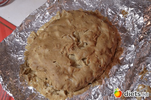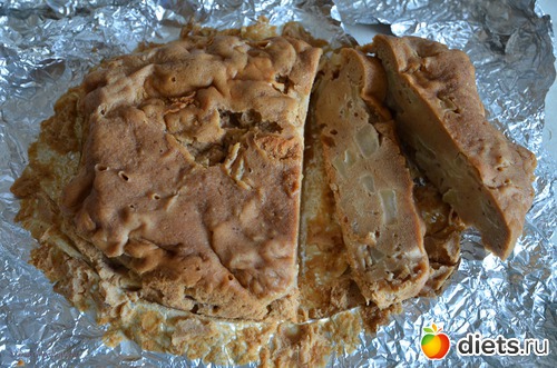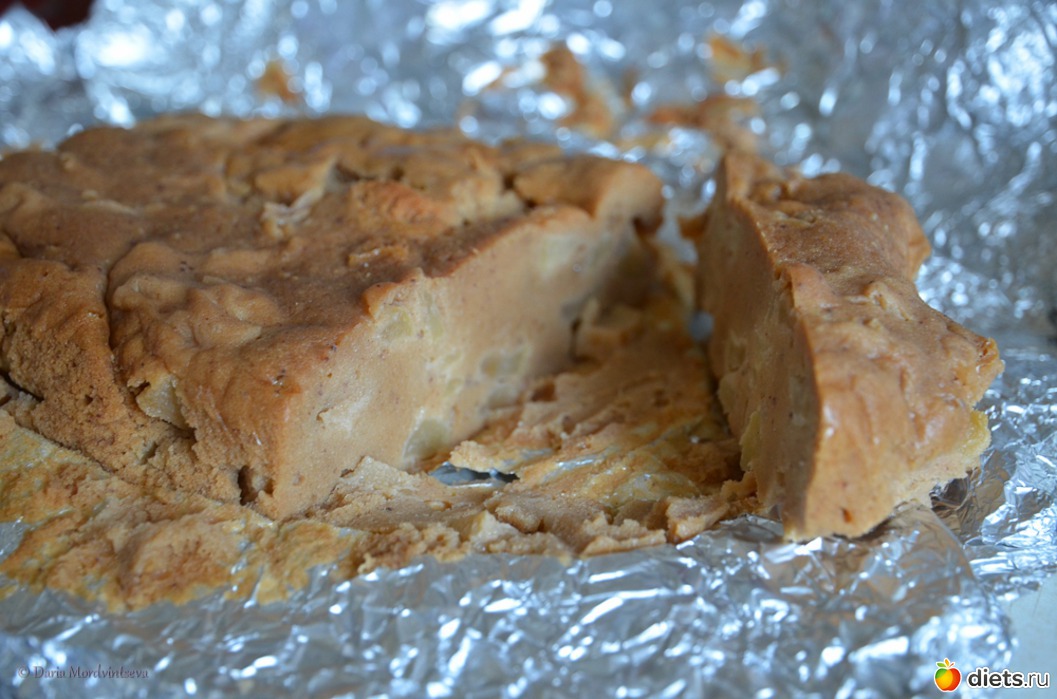 Только вот я яблоки смешала с тестом, а не залила их тестом, как обычно - так бы все яблоки рисковали остаться на фольге