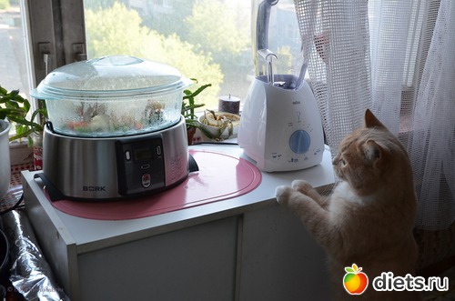 их так прет от пароварки, что они постоянно за ней следят, пока там что-нибудь готовится - будто она вот-вот взорвется ))) а мне приходится следить за кошками, чтобы не дай Бон не обожглись паром...