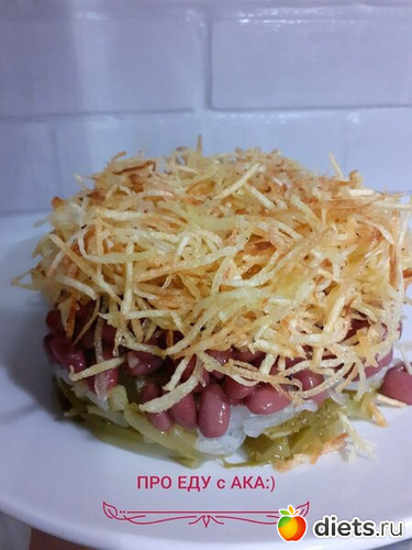 Салат пользовался большим спросом у гостей, т к стоил не дорого, выглядел красиво и, к тому же, был вкусным и оригинальным. А оригинальное название не давало затеряться ему в меню.