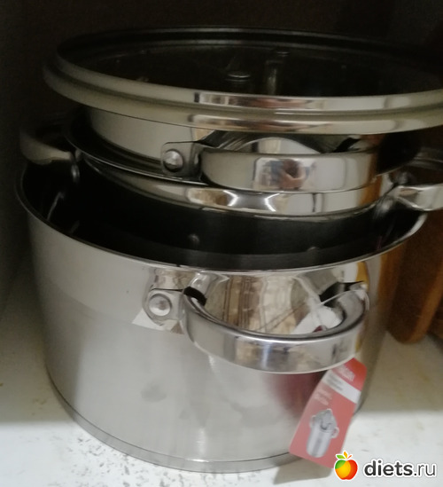 Кастрюльки такие замечательные и какая удобная этажерочка на колесиках. Ее вы тоже подарили?
