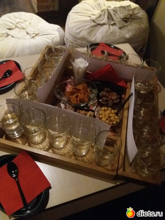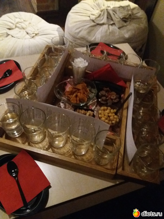Пива дегустировали 11 сортов, я и не думала, что оно может быть таким разным! Когда-то к поездке в Чехию готовились основательно, читали про сорта, скачивали "пивную карту Праги" и "пивной паспорт", что-то там на месте пробовали прям по плану, но всё, что я вчера узнала, было для меня новым. Закуски тоже было ичень интересные. Я даже перечислю: куриные сердечки с чили и розмарином, острые чипсы из батата, маринованый нут, карамелизированый арахис, крекеры с намазкой из сыра с плесенью, индюшачья печень с горчицей, чипсы из свеклы и моркови, маринованые в горчице и меде оливки, печень кролика с миндалем. На фото примерно половина закусок, объем на два человека. Ужин собственно и не понадобился